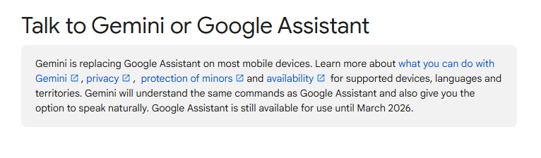 Google explained that the company now focuses on Gemini, its new AI model that combines voice, chat, and on-screen assistance. Gemini replaces Assistant in most areas, and Google wants to create a unified AI experience on phones, cars, watches, and smart home devices.